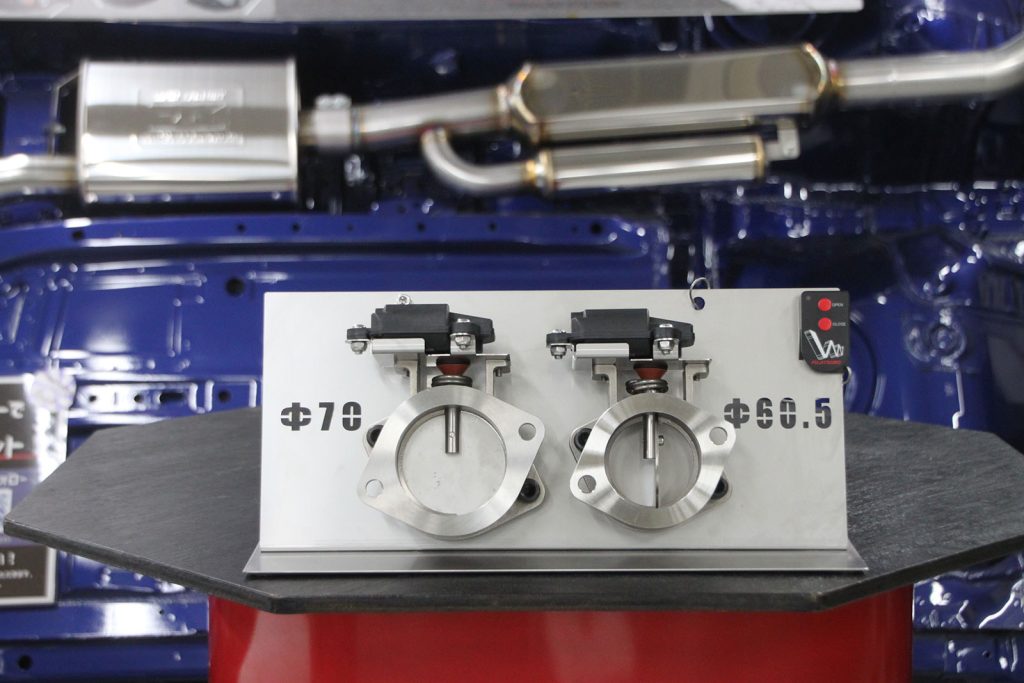 FUJITSUBO社のマフラーシリーズ「VVV(ヴィダブリュ)」は、マフラー本体に内蔵されたバルブの開閉によって排気経路を切り替え、音量・音質・性能特性を変化させる機能を備えています。